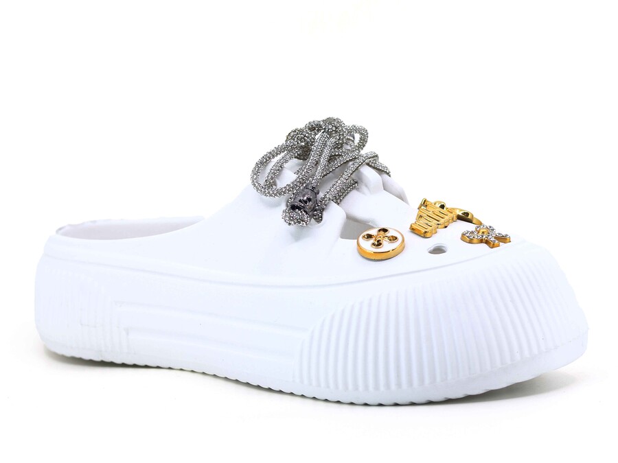 Twingo Zenne 3404 Bağcıklı Taşlı Eva Babet Ayakkabı Beyaz