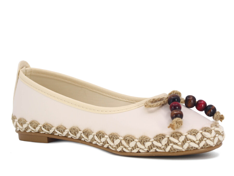 Yiğit Zenne Boncuk Babet Ayakkabı Krem